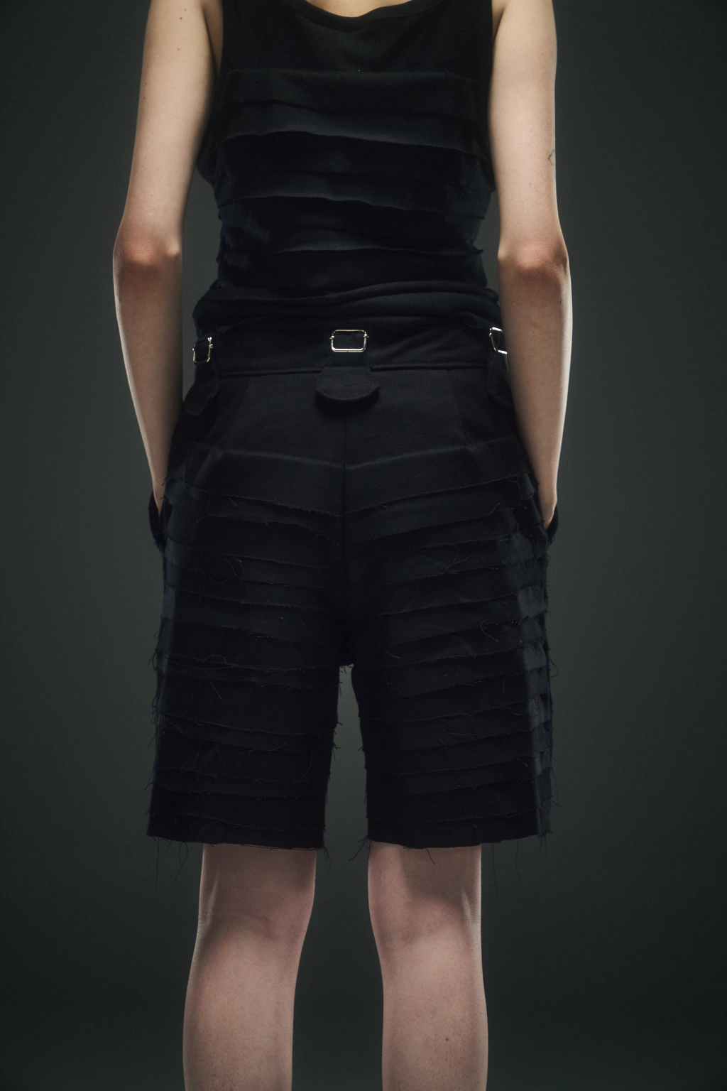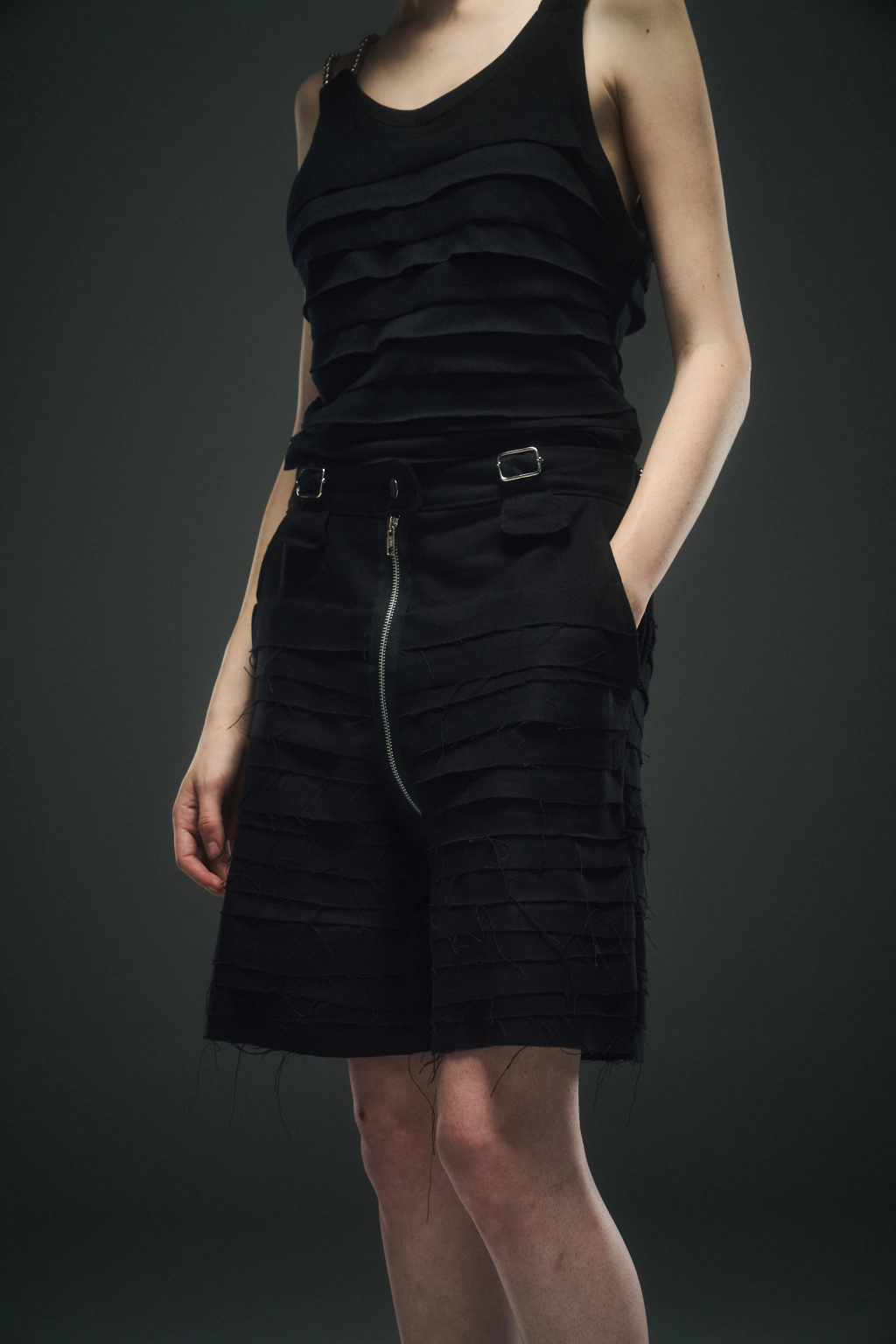SHORT ESTILO DUST, BOLSILLOS EN LOS COSTADOS, PASADORES CON DETALLES METALICOS Y CIERRE A LA VISTA.